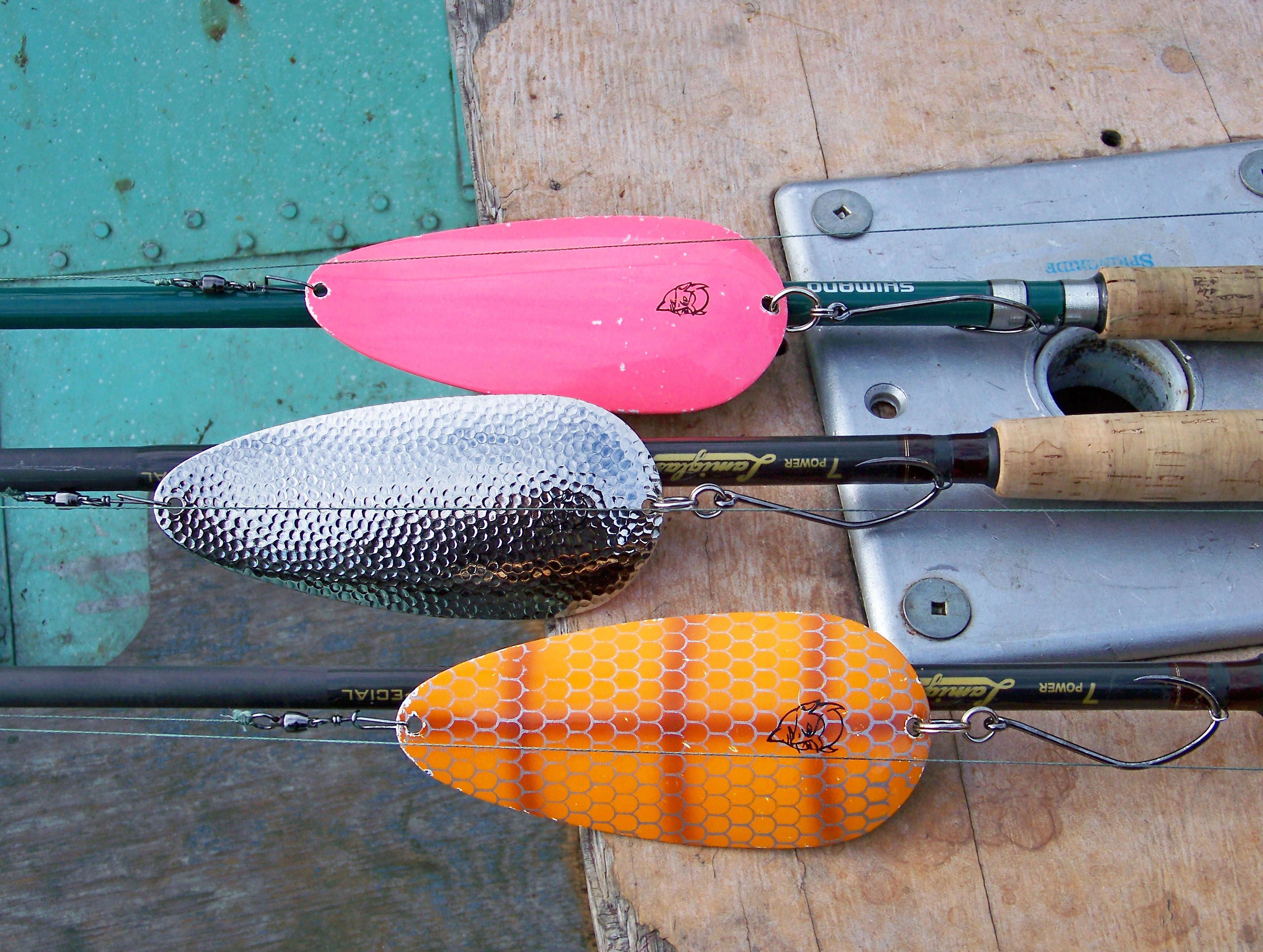 Husky Devle spoons, two trolling rigs, and one casting rig above. All three