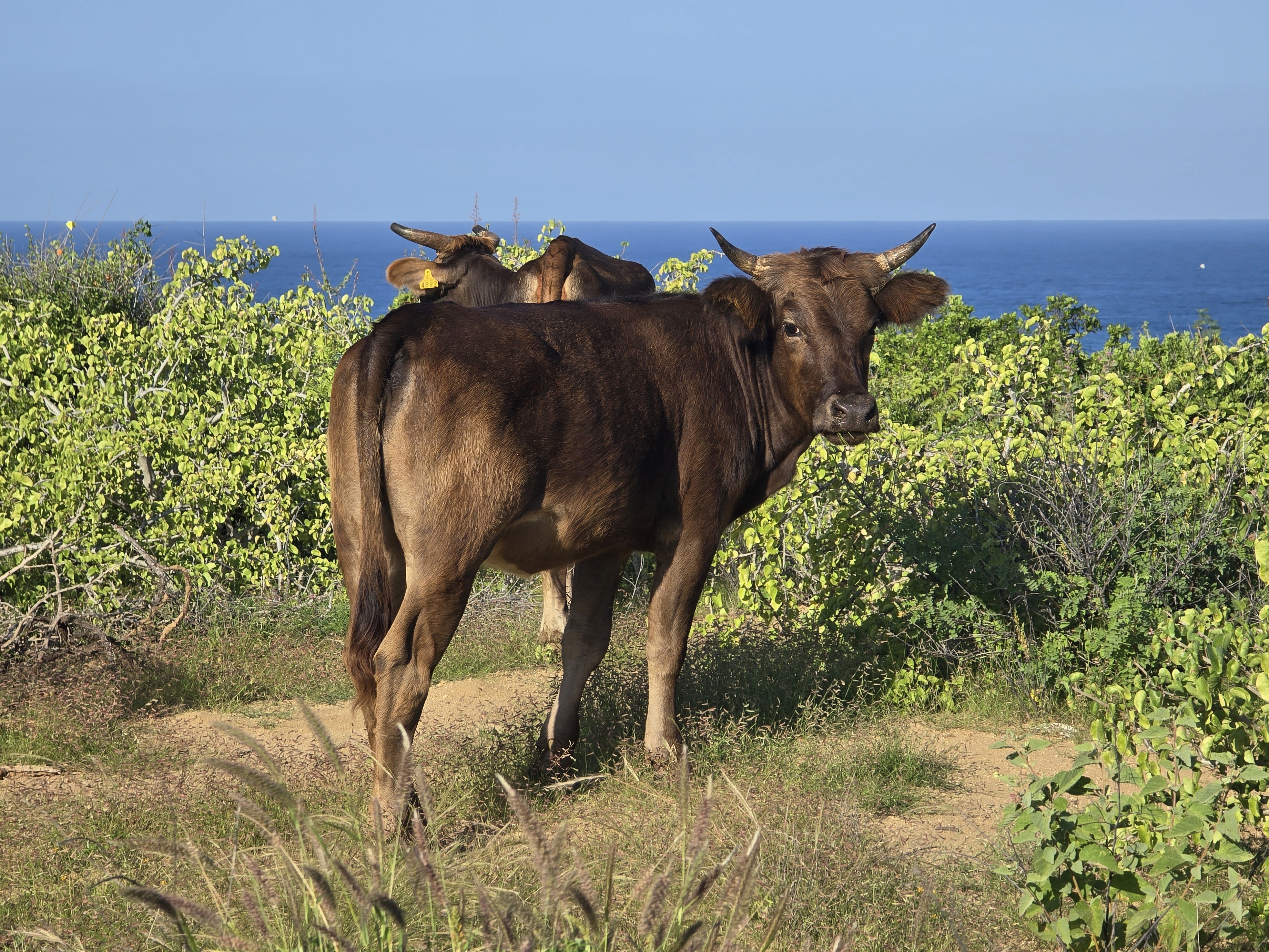 Passing curious free-range onlookers on the trail to the beach.