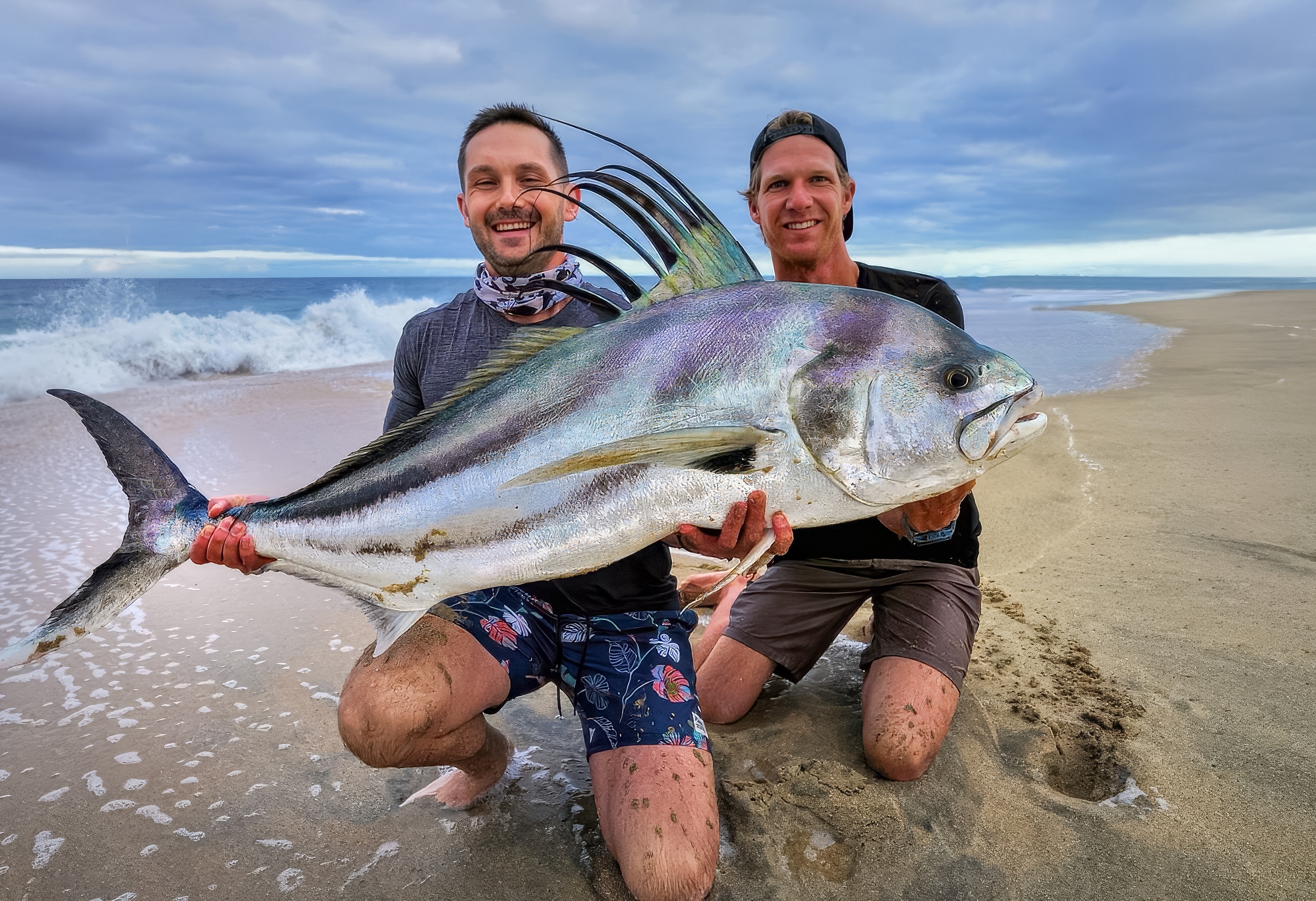 The Cabo Surfcaster / Wesley Brough on the right, with an ecstatic guide client holding a prized roosterfish!
