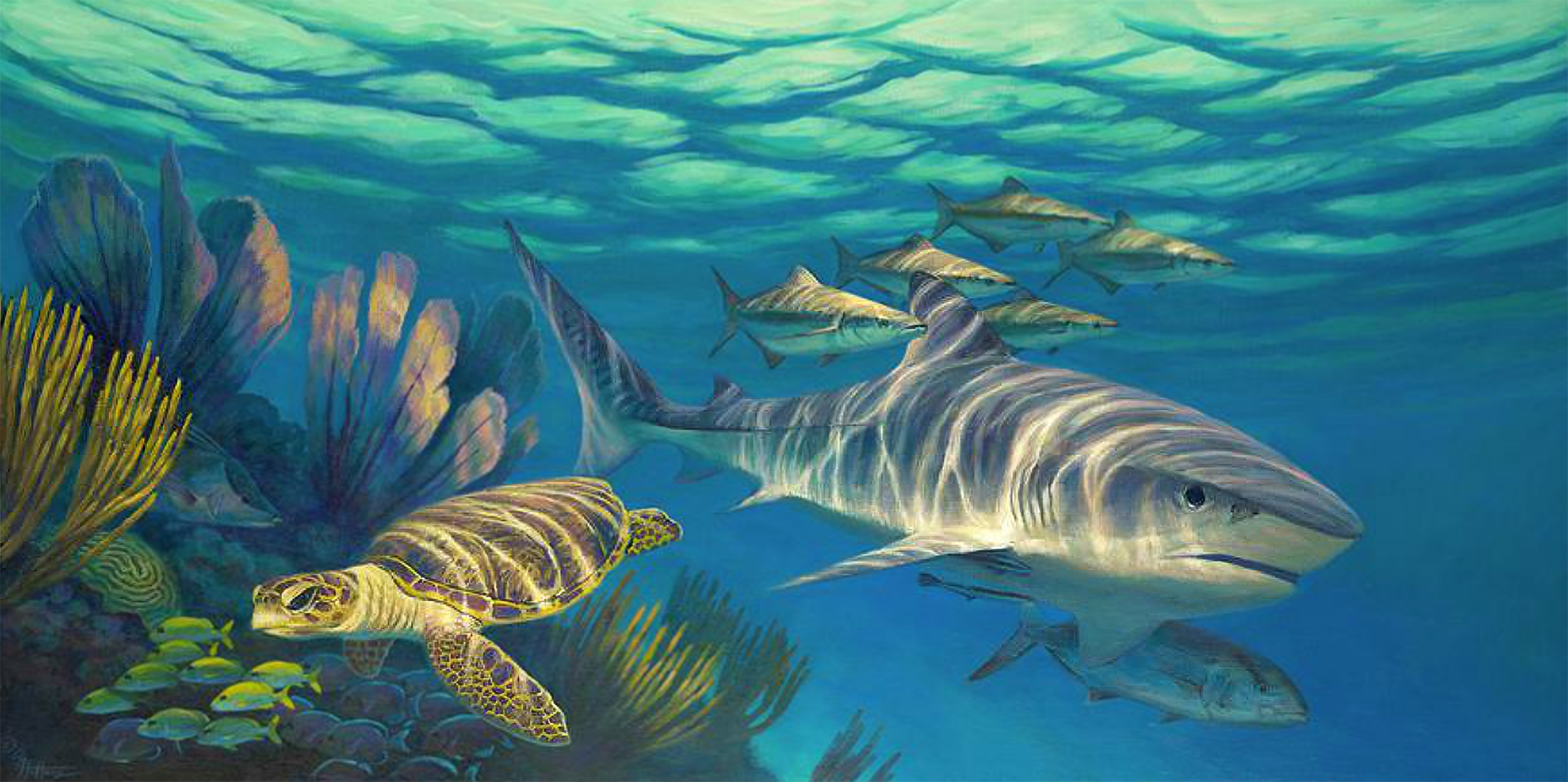 – Spotted Dolphin and Hawksbill Turtle, Bahamas, "Reef Flat" –
